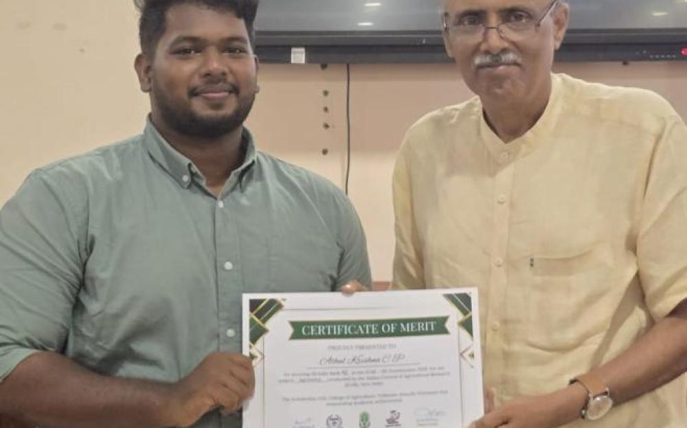 The JRF toppers of 2025 were felicitated on 26 September 2025 at the College of Agriculture, Vellayani. The Dean of Faculty, Dr. Jacob John, distributed certificates to 26 students who secured ranks below 100 in the national examination.