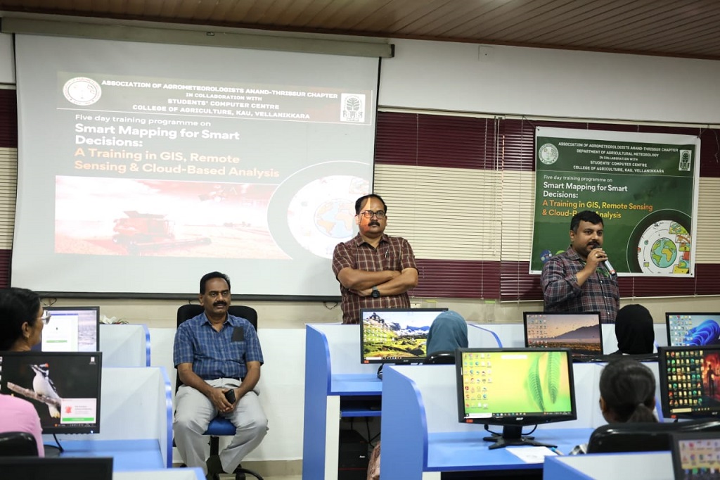 A five day training programme on “Smart Mapping for Smart Decisions: A Training in GIS, Remote Sensing & Cloud-Based Analysis” was organised from 12th to 16th January 2026 by the Association of Agrometeorologists, Anand–Thrissur Chapter, Department of Agricultural Meteorology, College of Agriculture, Vellanikkara, in collaboration with the Students' Computer Centre, College of Agriculture, Vellanikkara.